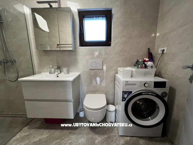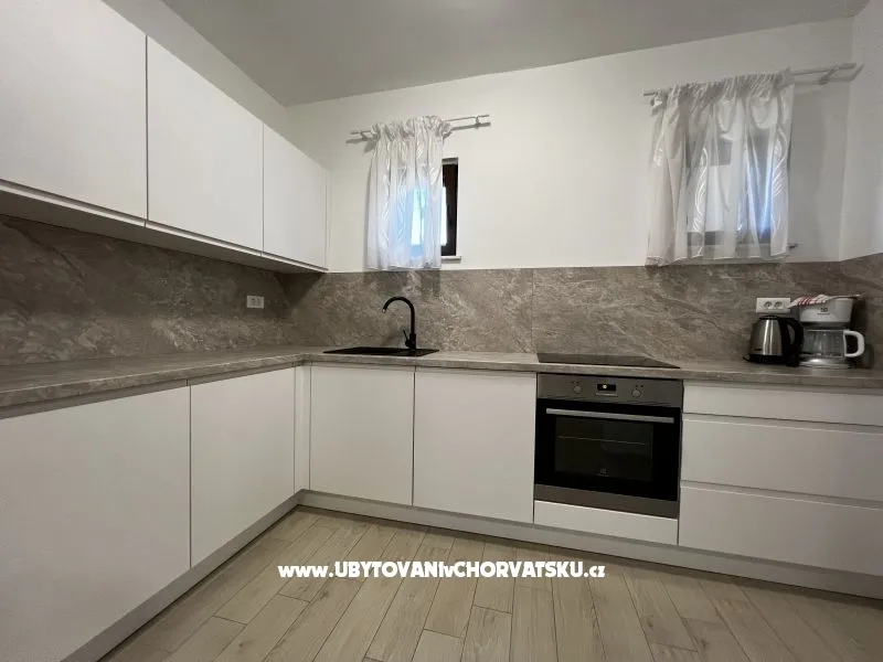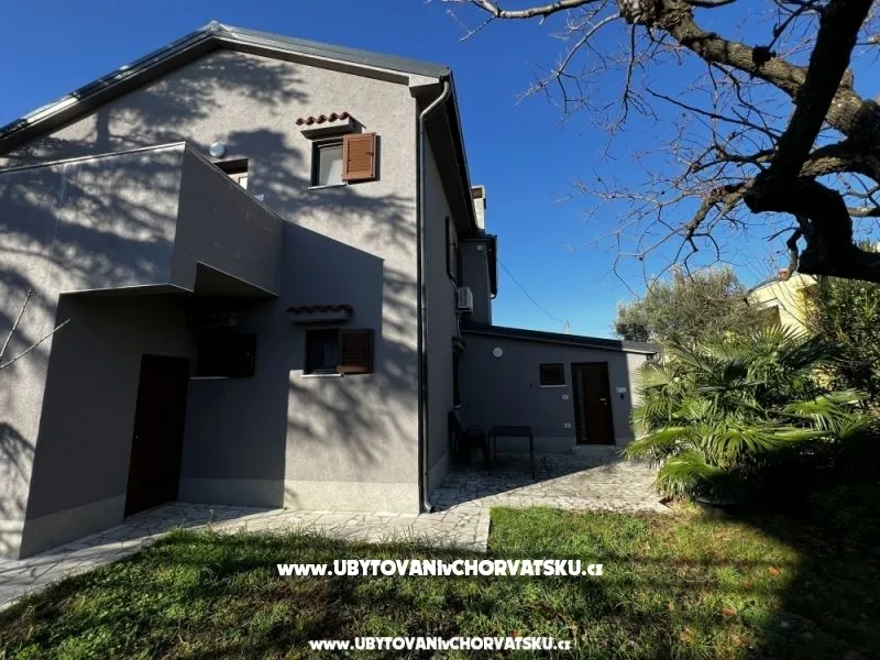 A house with 3 apartments is for rent in Medulin. Two apartments can accommodate up to 4 people, located on the ground floor, and one apartment can accommodate up to 6 people, located on the first floor. The apartments were renovated in 2022. The house has a yard of 500 m2, which can be used by all guests. In the yard there are facilities for children. The apartments are located 200 m from the promenade and 500 m from the beach.