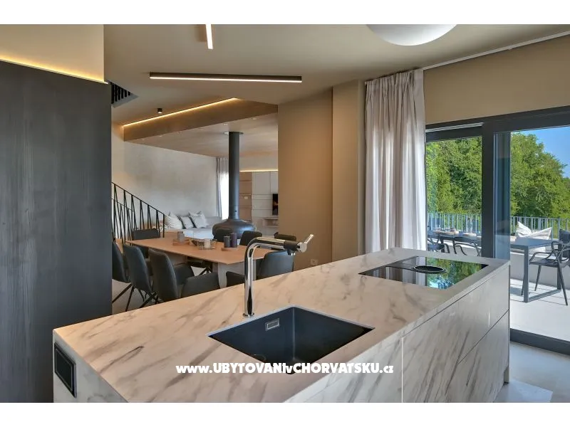 The luxurious villa Itea invites you to a dream vacation in the fairy-tale town of Vabriga on the northwestern coast of Istria. In addition to the rich gastronomic offer and beautiful beaches within easy reach, Istria offers you the opportunity to explore the numerous wine roads for which this Croatian region is famous. Villa Itea occupies an area of ??180 m2 and is built in a contemporary style with contrasting surfaces of minimalist design and has an accommodation capacity for a maximum of 8 people. Of the 4 bedrooms with fully equipped ensuite bathrooms, one is located on the ground floor and the other 3 on the upper floor of the villa. A washing machine and iron are at your disposal. Each room has its own terrace with a view of the greenery and untouched nature. On the ground floor of the villa there is a spacious dining room with a kitchen and a living room equipped with a corner sofa, coffee table, fireplace, play station and board games. On the terrace of the villa there is a beautiful swimming pool measuring 26 m2 and 1.5 m deep with an additional hydromassage option on one side of the pool. There are 8 sun loungers around the pool, and there is also an outdoor dining table and an outdoor barbecue. Villa Itea has many other entertainment facilities such as bicycles or electric scooters. There are 3 parking spaces available in the fully fenced courtyard of the villa. The villa's surroundings offer the pleasure of romantic walks in untouched nature, and on the nearest beach, less than 2 km from the villa, you can enjoy water sports and the beautiful Adriatic Sea. Nearby is a mysterious cave called Baredine, where you will discover a real treasure trove of underground sculptures arranged in five halls. The Baredine cave also hides a legend from the 13th century, a love story about the nobleman Gabriel who falls in love with the shepherdess Milka. Gabriel's mother resisted their love, so hired robbers threw the girl into a pit. Gabriel then disappeared with his horse, and shortly afterwards they found only the horse near the exit of another pit nearby. According to legend, the petrified body of the shepherdess slides deeper and deeper into the pit every day to meet her beloved on the other side. Istria is a fairy tale not only because of its diverse and interesting sites, but also because of its numerous medieval fortresses and towns that bear witness to the rich history of this region. For example, the town of Motovun in the center of Istria is a veritable hotbed of medieval fortresses, and a film festival is held there in the summer months. On the Istrian coast, you will find urban centers such as Umag, Poreč, Rovinj, or Pula that date back to pre-antique times. For example, in Pula in the south of the Istrian peninsula, you will be able to see the Roman amphitheater, which is also known as the largest preserved monument from antiquity. A little further north, in the town of Poreč, you can see a unique complex of early Christian sacral architecture from the 6th century, which is one of the most beautiful preserved monuments of Byzantine art. Istria also has a rich food and wine offer, given that it is a region with an extremely favorable geographical position, today the best wines and olive oil come from Istria. Do not miss trying other interesting recipes such as Istrian Boškarin meat, intense truffles or traditionally made pasta. If you want your vacation to turn into a true oasis of peace and privacy, choose the Itea villa, which will provide you with the luxury you deserve, and the rich gastronomic, cultural and sports offer of Istria will complete your vacation and make it perfect. Please note that this facility does not accept youth groups or bachelor/bachelorette parties. A youth group in this facility consists of people in a dhobi of 30 or less. Do not book this accommodation if you are a group of youth or planning a bachelor/bachelorette party, because your reservation will be rejected after you have made the reservation, which can happen when you arrive at the facility or during your stay, and your money will not be refunded.