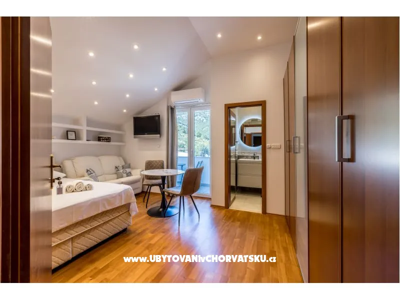 Bolotel Accommodation – two comfortable apartments in a quiet part of Bol Welcome to Bolotel, modernly furnished units ideal for couples, families, or friends, located in a peaceful area of Bol on the island of Brač. You have two apartments at your disposal: Studio apartment – a cozy and newly renovated space for two people, featuring a private balcony with a mountain view and a partial sea view. It includes air conditioning, a kitchen, a bathroom, and private parking. It is situated just 50 meters from the grocery store and 10–15 minutes on foot from the town center, beaches, and promenade. Larger apartment with a mezzanine – a spacious apartment ideal for two adults and two children aged 12 to 17. It features a separate bedroom, a gallery (mezzanine) with additional beds, a large balcony with a sea view, two air-conditioners, a fully equipped kitchen with an oven, a bathroom with a washing machine, and private parking. Both apartments offer free Wi-Fi. We will personally welcome you and ensure that your stay is comfortable and worry-free.
