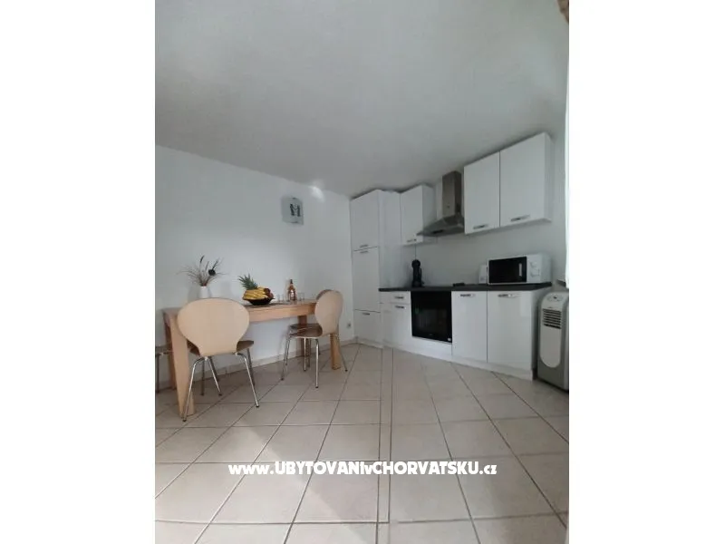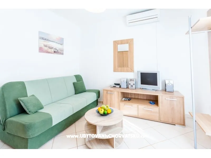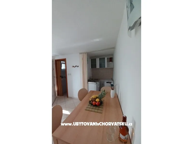 Villa Klara - AP1 is a one-room apartment consisting of a kitchen, living room, bedroom, bathroom with toilet and shower, terrace with sea view of 40 m2. Equipped with a set of dishes, utensils and bed linen for three people. Distance from the beach 50 m