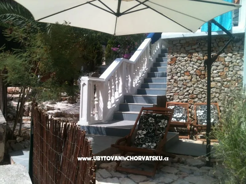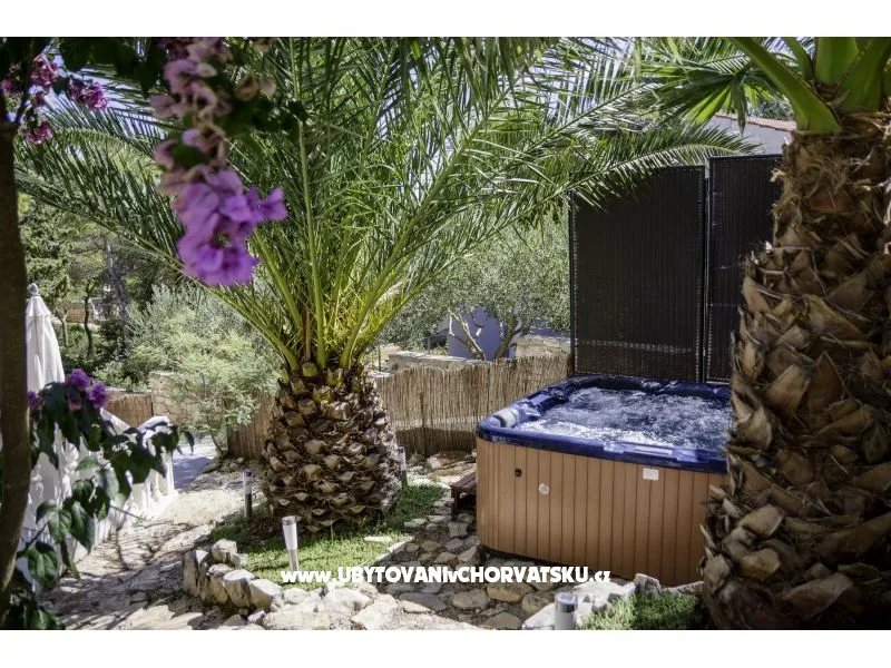 Villa Klara is a detached property that can accommodate a maximum of 9 people. It is 50 meters from the beach, located in the beautiful Osibova Bay, which provides crystal clear sea. It is an ideal place for lovers of swimming, diving and for escaping the city crowds and enjoying a vacation. The nearest grocery store is in Milna, two km away. The villa has three one-bedroom apartments. Each apartment has a separate entrance, a living room with an extra folding bed, a bedroom with a double bed, a bathroom with a shower, a kitchenette, and a terrace with a sea view. The apartments are equipped with SAT-TV, WI-FI internet, and air conditioning. On the ground floor of the villa there is a shared kitchen and a 20 m2 terrace for socializing. Within the villa, guests can enjoy and relax in the beautifully landscaped garden with a hydromassage heated pool - jacuzzi for six people, a grill, The beach for children and non-swimmers is about 50 meters away, and the beach for swimmers is a few meters away. The host will be happy to provide you with a boat mooring, which is a hundred meters away from the Villa, and to direct you to the attractions of the island of Brač. A pleasant stay on Brač due to the mild climate, many sunny days and warm sea is possible from the beginning of May to the end of October. Parking space for three vehicles in front of the villa. Arrival and departure: check-in from 16:00, check-out no later than 10:00. Deposit: 30% by bank transfer, and the remaining 70% by payment before arrival or when collecting the keys. Cancellation fee: 0 - 60 days before the arrival date no refund, 61 and more days before arrival 90% refund. Pets are not allowed. Parties / events are not allowed.