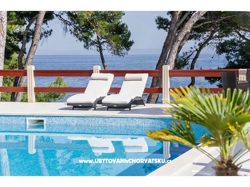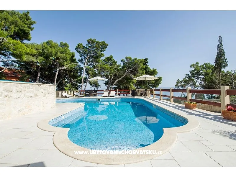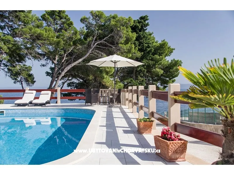 The house with a private pool of 75m2, nine air-conditioned apartments and private free parking in the shade of a pine forest, is located in a quiet part of Sumartin with a beautiful view of the sea, the islands, Biokovo, Hvar and Pelješac. The facility is located right next to the beach, twenty meters from the sea and faces south. In total, nine air-conditioned apartments can accommodate up to 34 people. The apartments are divided into floors: four on the first floor and four on the second, while one is located on the ground floor. Depending on availability, we will offer you apartments that are available at that moment. Prices are lower in June and September, so feel free to contact us for offers for those periods. Washing machine available on request. Restaurants, coffee bars, supermarkets, post office and the town center are about 500 meters away. Accommodation on 1 floor: 1. Apartment 2+2: 50 m2, 1x bedroom with double bed, two beds/armchair in the living room, kitchen, bathroom, private terrace facing south; 2. Apartment 2+2: 50 m2, 1x bedroom with a double bed, two beds/armchairs in the living room, kitchen, modernized bathroom, private terrace facing south; 3. Apartment 2+0: 30 m2, 1x bedroom with double bed, living room, kitchen, modernized bathroom, private small balcony facing north; 4. Apartment 5+0: 70 m2, 2x bedrooms (a: double bed + bed for one person; b: double bed), living room, kitchen, bathroom, private terrace facing west. Accommodation on the 2nd floor: 5. Apartment 2+2: 50 m2, 1x bedroom with double bed, two beds/armchair in the living room, kitchen, bathroom, private terrace facing south; 6. Apartment 2+2: 50 m2, 1x bedroom with double bed, two beds/armchair in the living room, kitchen, modernized bathroom, private terrace facing south; 7. Apartment 2+0: 30 m2, 1x bedroom with double bed, living room, kitchen, modernized bathroom, private small balcony facing north; 8. Apartment 5+0: 70 m2, 2x bedrooms (a: double bed + bed for one person; b: double bed), living room, kitchen, bathroom, private terrace facing west. Accommodation on the ground floor: 9. Apartment 4+0: about 45 m2, 2x bedrooms (a: double bed; b: 2x single bed), modern kitchen, living room, bathroom with hydromassage, private terrace facing south. It is possible to accommodate up to 34 people in nine air-conditioned apartments. The apartments are divided on floors: four on the first floor and four on the other, while one is on the ground floor. Depending on the availability, we will offer you the apartments that are available at that moment. Prices are lower in June and September, so feel free to contact us for offers for those periods. In all apartments there is a new kitchen plate, a new workpiece and a new sink mixer, while the five apartments are completely redesigned; so apartments are modernized. The bathrooms in the other four apartments will be redesigned for the next (2020) season. There is a large common terrace in front of the pool with deckchairs, tables and chairs for enjoying the eye and in front of the pool. Washing machine available upon request. Restaurants, cafes, supermarkets, post office and center are about 500 meters away. Accomodation on the 1st floor: 1. Apartment 2 + 2: 50 m2, 1x bedroom with double bed, two beds / armchairs in the living room, kitchen, bathroom, private terrace facing south; 2. Apartment 2 + 2: 50 m2, 1x bedroom with double bed, two beds / armchairs in the living room, kitchen, modern bathroom, private terrace facing south; 3. Apartment 2 + 0: 30 m2, 1x bedroom with double bed, living room, kitchen, modern bathroom, private small balcony facing north; 4. Apartment 5 + 0: 70 m2, 2x bedrooms (a: double bed + single bed, b: double bed), living room, kitchen, bathroom, private terrace facing west. Accommodation on the 2nd floor: 5. Apartment 2 + 2: 50 m2, 1x bedroom with double bed, two beds / armchairs in the living room, kitchen, bathroom, private terrace facing south; 6. Apartment 2 + 2: 50 m2, 1x bedroom with double bed, two beds / armchairs in the living room, kitchen, modern bathroom, private terrace facing south; 7. Apartment 2 + 0: 30 m2, 1x bedroom with double bed, living room, kitchen, modern bathroom, private small balcony facing north; 8. Apartment 5 + 0: 70 m2, 2x bedrooms (a: double bed + single bed, b: double bed), living room, kitchen, bathroom, private terrace facing west. Ground floor accommodation: 9. Apartment 4 + 0: approx. 45 m2, 2x bedrooms (a: double bed, b: 2x single bed), modern kitchen, living room, bathroom with hydro massage, private terrace facing south.