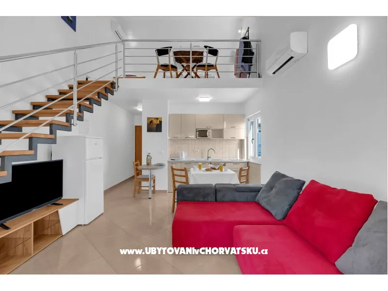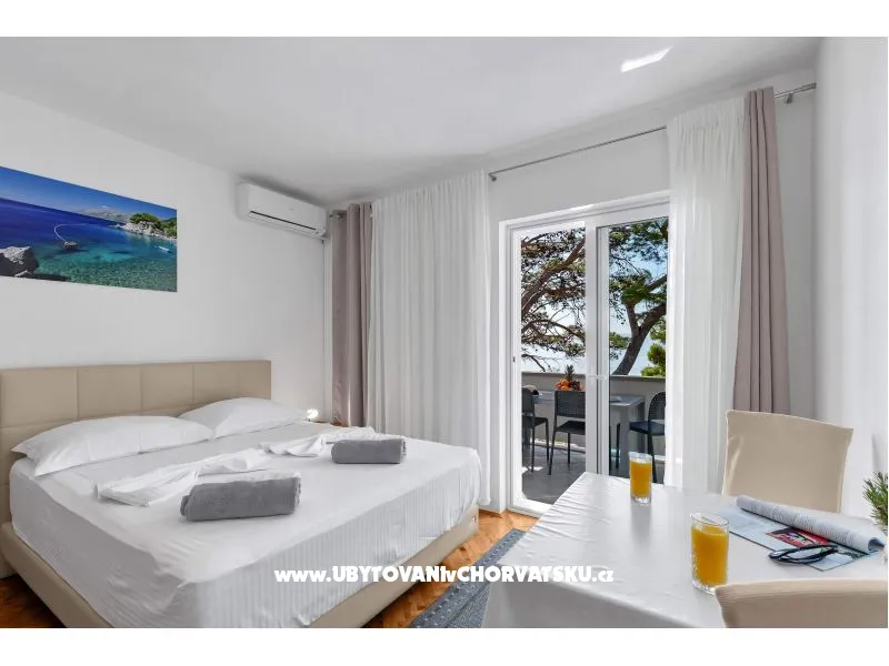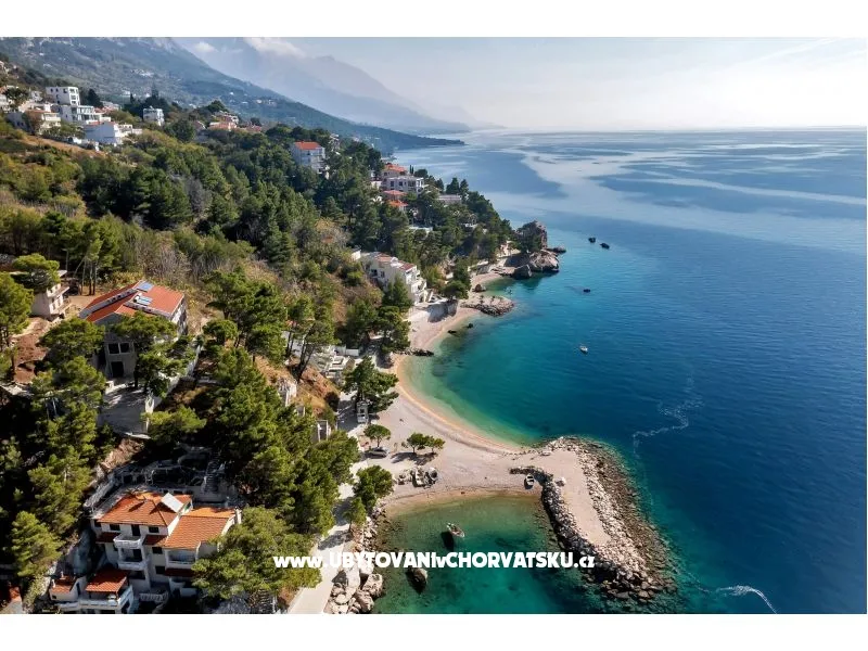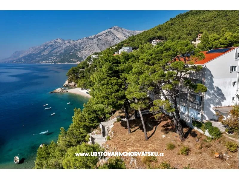 House with 13 apartments, located next to the beach, only stairs share from the beautiful pebble beach. The house has a large terrace with barbecue, which all guests can use. Guests have free parking and wi-fi.