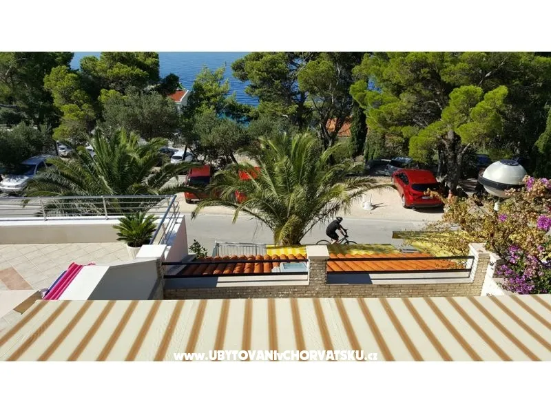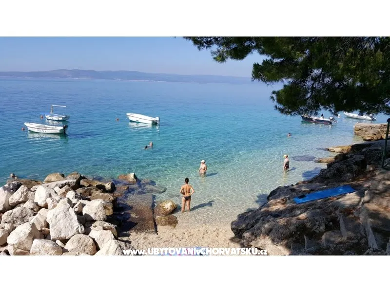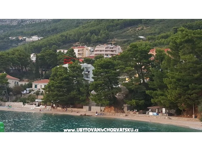 House for rent, Brela Croatia rooms, Villa Sodan is situated 50 m from the beautiful pebble beach (seen on the picture) by the crystal clear Adriatic sea. The house Villa Sodan Brela Croatia has 5 rooms, a spacious living-room of 25 m?, kitchen of 16 m? and a terrace of 40 m?. The rooms are double, but they can by inserting additional cots easily convert into three bed rooms at your request. All rooms have a private ensuite bathroom. Rooms with bathroom are between 16 m? and 19 m?. Each room has its own table on the terrace. The living room is equipped with a big-screen TV with SAT system and computer with Internet access for personal use. At your request we can prepare and serve breakfast. For larger families or group visits you can rent two or more rooms (up to 5), in which case you will have your own kitchen, the idea being that the entire house (five rooms) can be converted into a big apartment where each room will still have its own bathroom ensuite. That being the case, we can rent you an apartment within our house with up to 10 or even 12 beds, its own kitchen and the above described living room (apartment house).The beach has a blue flag of the European Union indicating the level of cleanliness of the sea water and the beaches is up to highest standards. Our house Villa Sodan Brela Croatia is perfectly situated, bearing in mind that it is located only 400 m from the centre of Brela (5 to 10 minutes walk), 1,000 m from Baška Voda (10 to 15 minutes walk), 200 m from the Berulia hotel, 15 m from the supermarket (opened from 07:00 till 21:00) and 150 m from the nearest restaurant. There is a large parking-lot in front of our house, so each room has its own parking place. In view of all of the above, you can easily conclude that in our villa in Brela, you can spend a quality vacation without even using a car. If you really want to have a good rest, your first choice should be a room with a private bathroom ensuite with an access to kitchen where you can prepare your own breakfast or order it from us and consume it on the terrace with a beautiful sea-view, whereas in the evening you can eat in one of the prestigious restaurants in Brela or Baška Voda. Thank you for visiting our web pages and we hope that you will visit us and enjoy our pleasant accommodation and natural vistas that only Brela can offer. And do not forget - Brela are blessed with a 5 km long stretch of pebble beaches with beautiful and well-light promenade stretching along the entire beach. For more information, please contact us via email.