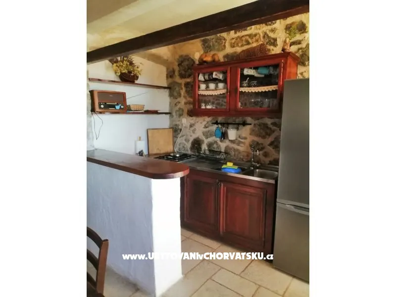 If you want to spend your vacation far away from noise and crowds and want really to rest, visit Gromin Dolac and our authentic Dalmatian stone house. Gromin Dolac is a settlement on south side of the island of Hvar, below which there are series of perfectly clean azure blue beaches. Gromin Dolac is only 3 km from the bigger tourist settlement Zavala. Zavala can be reached through the small tunnel from the village of Pitve. In the same time, Gromin Dolac is located in the middle of the island as an excellent base to explore the whole island . Our stone house is more than hundred years old but it has been renovated to satisfy modern living, using natural materials like stone and wood as much as possible. House consists of kitchen with dining room and living room with fireplace (barbecue) ,two bedrooms, storage space, hallway and bathroom with shower. In front of the house is large terrace with beautiful sea view of islands Ščedro, Korčula and peninsula Pelješac, parking place and patio. It is suitable for a family with children. You need 10 min. by walk to the nearest beach.