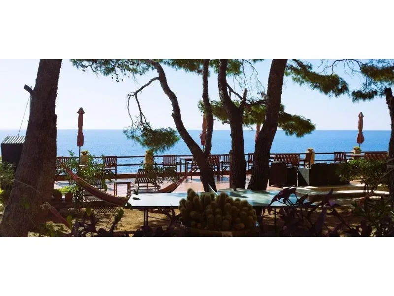 Directly facing the sea (approx. 30 m away), the house is divided into three floors, the part of ground floor used by the owners, part of ground floor, the first floor and part of attic reserved for guests. You will only meet the owners in passing, or when you want to speak with them, or to spend some time together. and only 100 meters from the romantic love rock (video)! the plot is about 800 m2 , on a slight 25 ° slope. A paved road leads to the villa, which is detached and situated in a pine grove. At the bottom of the plot is a garage for 6 cars. There is a municipal water supply system, three-phase current,telephone, and GSM signal. Below the villa is a track for pushing boats into, and pulling them out of the sea. The marina and beach are 150 meters away from the villa, There is a cascaded area in the pine grove suitable for volley ball, table tennis, badminton etc. Each room in the villa offers a view of the sea, and there is a communal living room of 40 m2 with an opening onto a semicircular terrace and garden facing the sea. The garden has a moveable barbecue available for use, and There is free use of sun loungers or swing and hammocks, as well as chess and cards etc. All rooms have private facilities, with a loggia or terrace or balcony overlooking the sea. Each room has a refrigerator included, and valuable goods, money, document etc. free use of the safe-deposit box for storage of extra charged services use of washing machine option: use of a shared kitchen BEACHES Below the villa is a new small paved beach !!! And there is a beautiful, exotic pebble beach about 400 meters away which you approach by a romantic pathway. If you like free climbering, adventures, there is also a more exotic beach situated in a picturesque and deserted lagoon, about 700 meters, (an oasis for naturists) relly paradise Piscena about 3500 m and Lutshistshe about 2700 meters away from the villa If you like to dive without breathing, then you've come to the right place