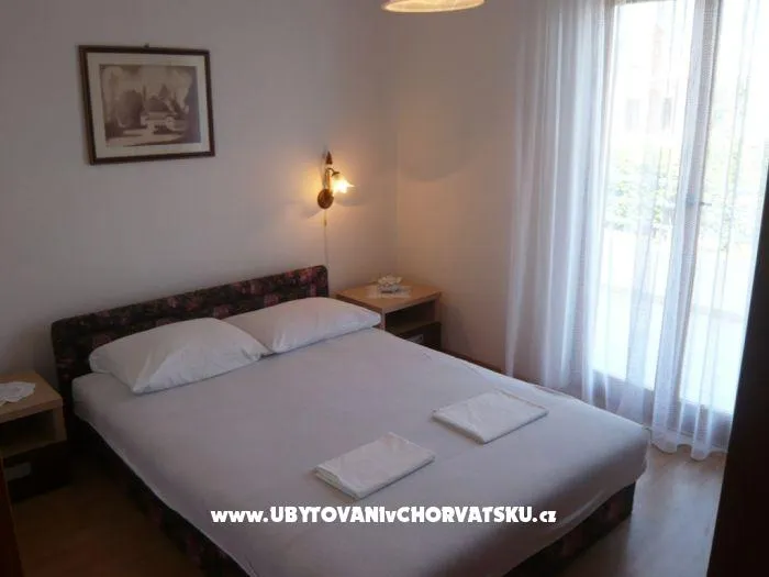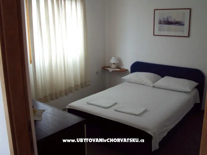 Private accommodation in 3 apartments for rent. 2 apartments 40m2 on the first floor, each for 4 persons and 1 apartment 60m2 on the second floor for 6 people. Each apartment has a balcony / terrace, TV, kitchen, bathroom ... Parking in the backyard, grill. House is 20 m from the sea and beach.Wi-Fi internet.
