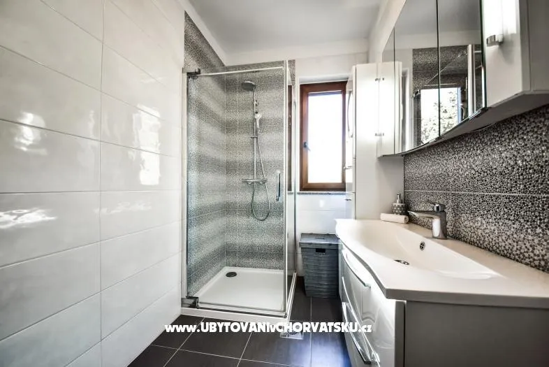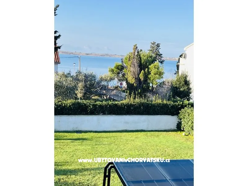 Apartment on the first floor of a family house, 20 m from the beach, air-conditioned. Modernly furnished, with fully equipped kitchen with dishwasher and oven, living room, terrace with sea view. Free WIFI. 2 bedrooms, bathroom with washing machine, separate toilet. Large yard with parking, grill.
