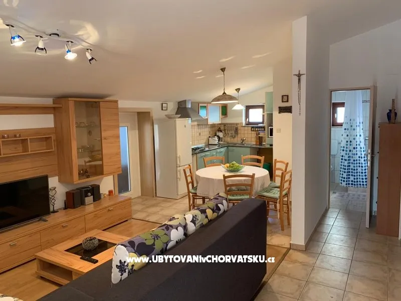 Rent an apartment on the island of Vir. The apartment has 3 bedrooms, bathroom, kitchen, dining room and living room and a terrace overlooking the sea. The apartment is air-conditioned, with TV and satellite, and other amenities. The apartment is rented from 1.5. to 1.11