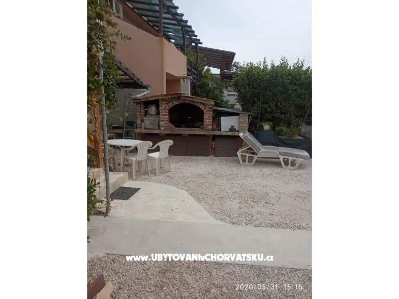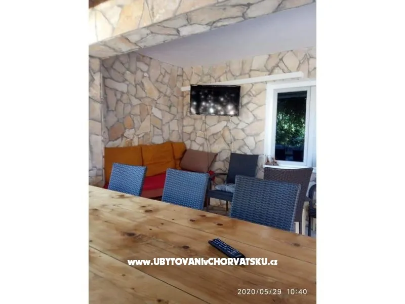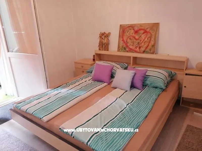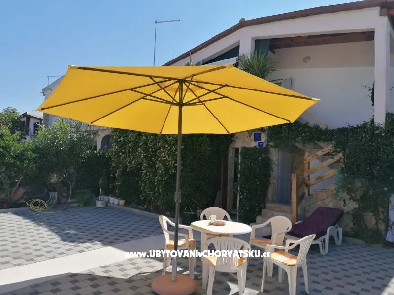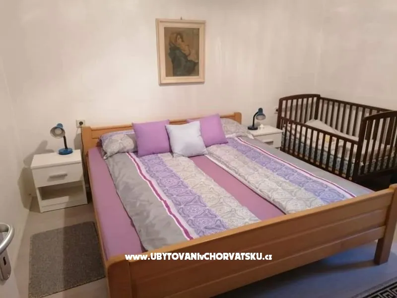 The apartment is on the south side, the most beautiful part of the island, 150 m from the sea and the beach, which has parts of the shallow and deep sea. The apartment has its own parking space, size 85m2, two bathrooms, two bedrooms with double bed - available kinderbet and high chair, one small extra room with bunk bed, living room with sofa bed, large open terrace with TV, closed terrace, barbecue in the yard....