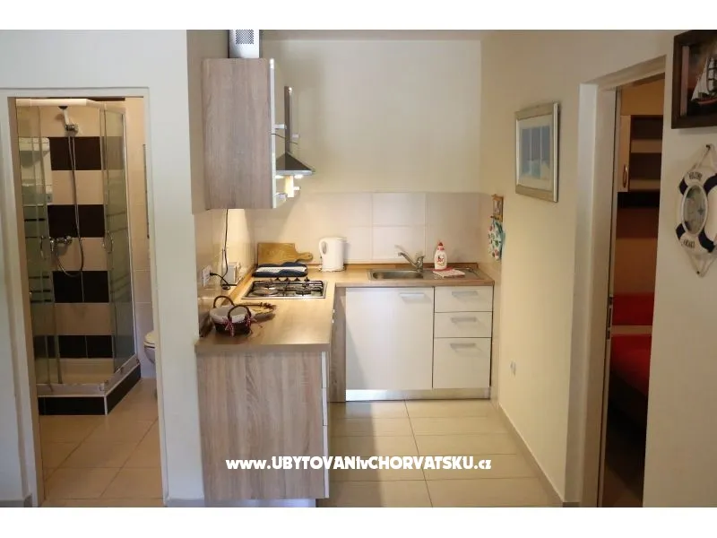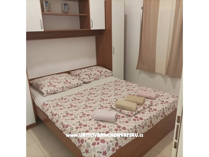 Each of the app. has 65m2 with 2 bedrooms with double-beds, bathroom,fully equipped living room ca be used as an additional bed for 2 more persons and with TV.Kitchen is also fully equipped (hot plate, cooker hood, refrigerator with cooling aggregate, dining table with chairs) Each of the app. has additional 20m2 of terrace. Both app. are air-conditioned.