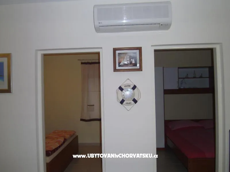 The house is 70 meters to the sea. 1st floor to the beach, p1.apartman 6 +2 persons, is on the 1st floor and has 3 bedrooms, kitchen, living room, bathroom, 2 terraces, balcony, air condition, barbecue, wi-fi, along the pine forests